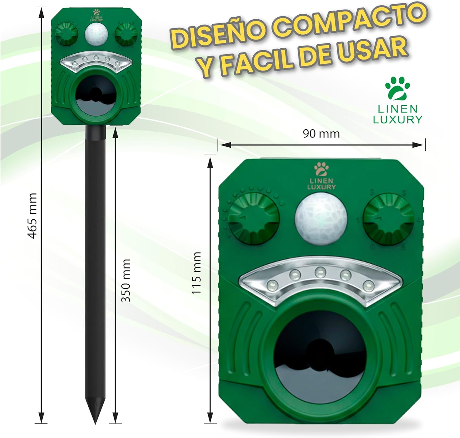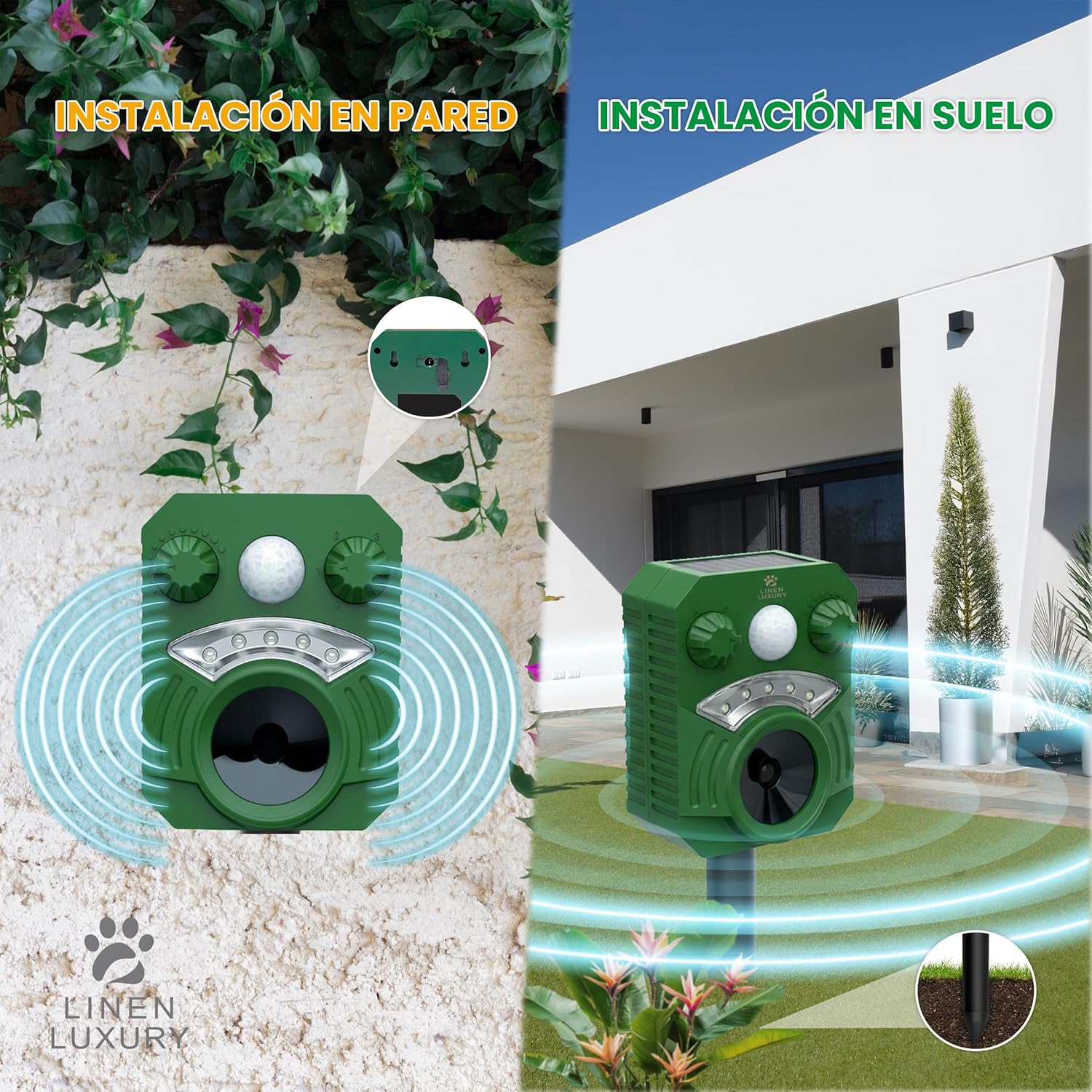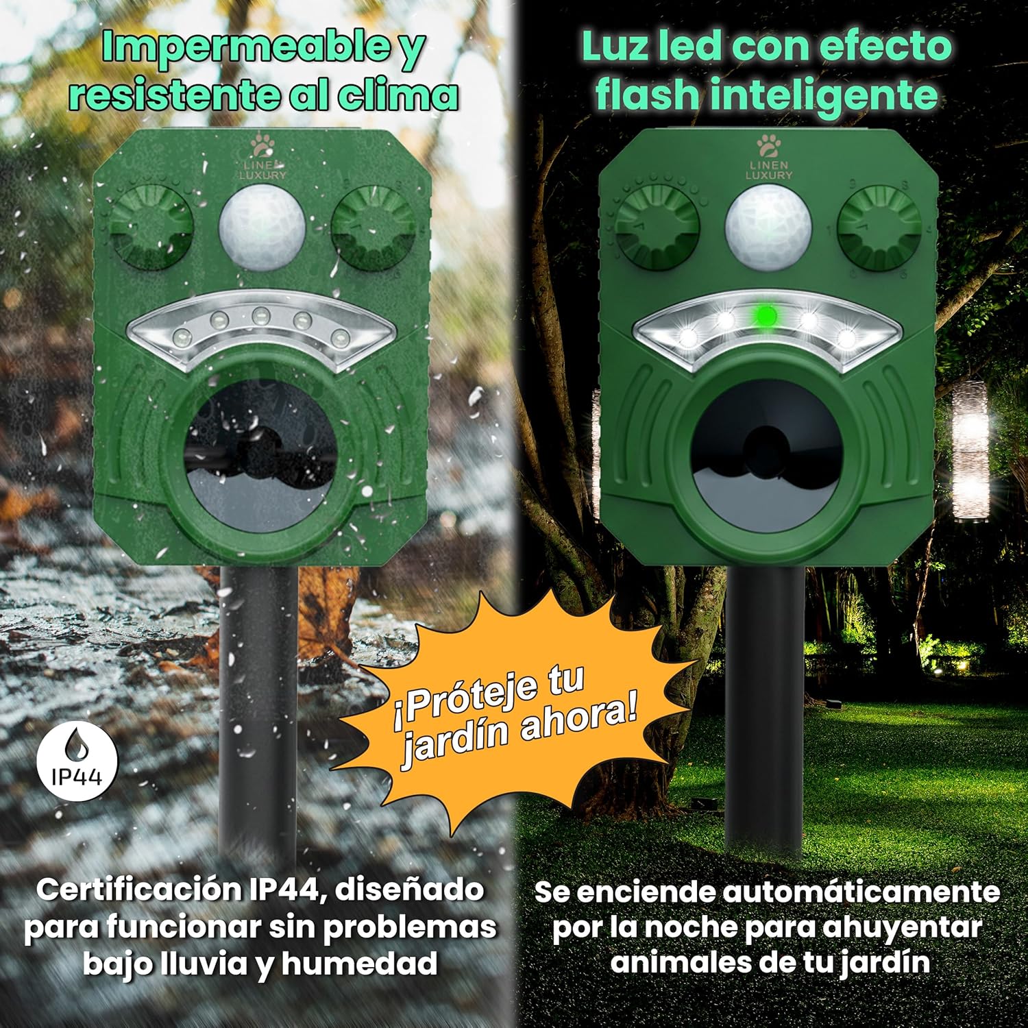 Protege tu hogar y jardín con un sistema de ultrasonidos de alta frecuencia y luces intermitentes. Ahuyenta gatos, perros, zorros, jabalíes, ratones y aves sin dañarlos. Mantén tu espacio libre de intrusos sin productos químicos. Seguridad y tranquilidad garantizadas.